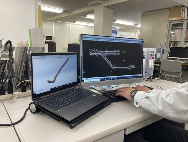 主な業務内容として、現地測量、工法検討、数量検討、工程検討、図面作成があり、今後更に3DCADを活用した線形検討も取り入れていきます。